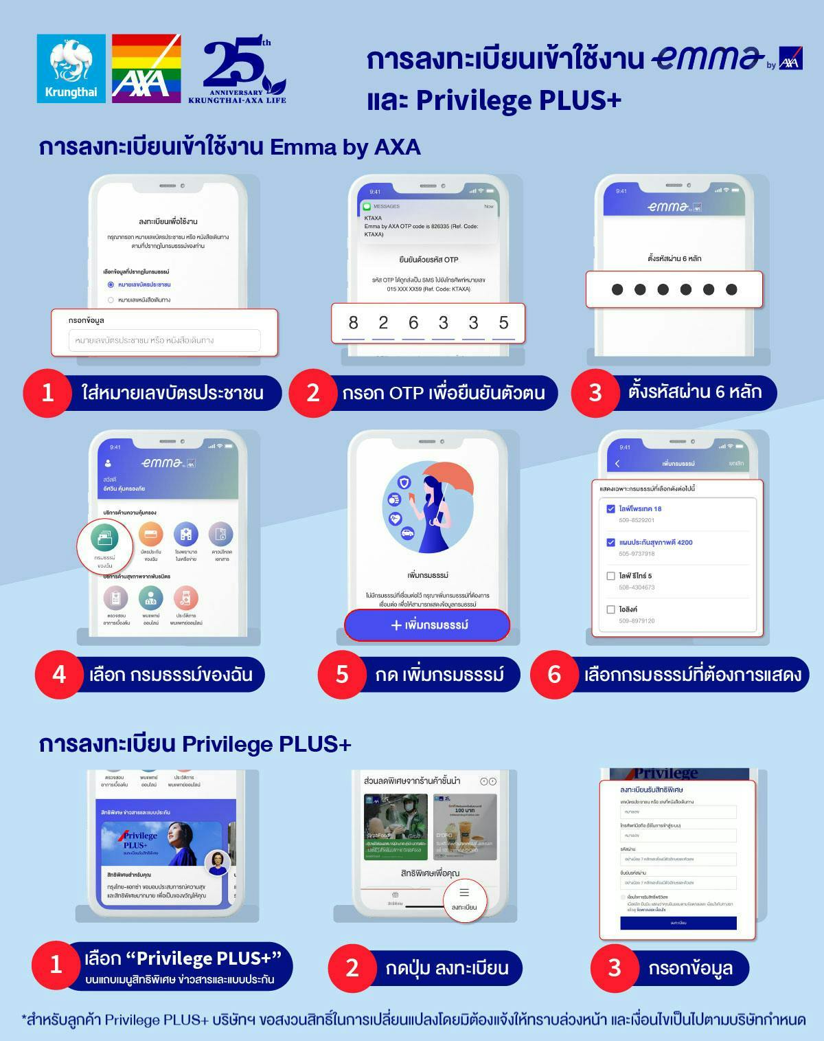 ขั้นตอนการลงทะเบียนเข้าใช้งานEmma by AXA และการลงทะเบียนพริวิเลจ พลัส (Privilege PLUS+)