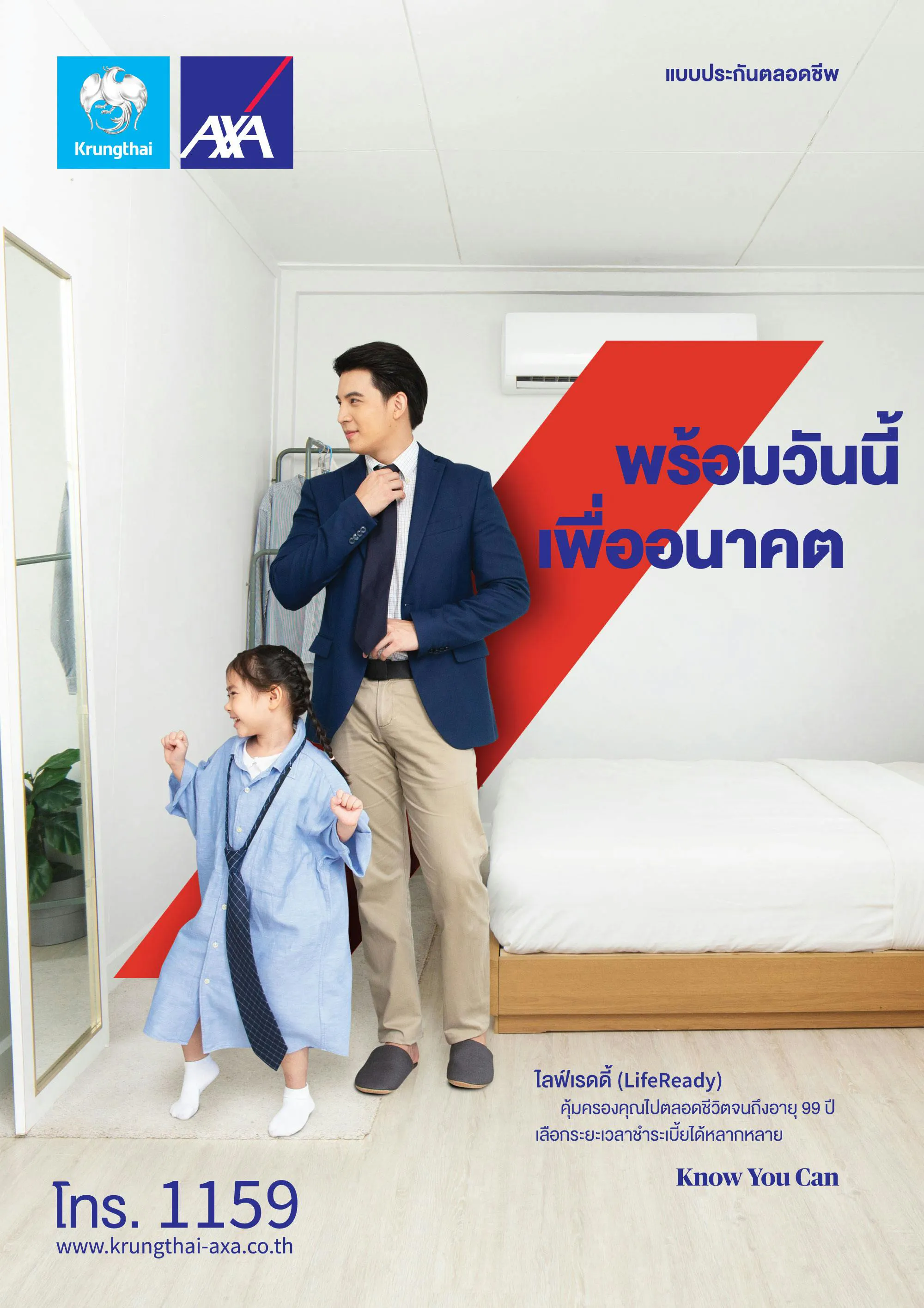 The insurance premium can be used for a tax deduction of up to 100,000 THB as specified by the Revenue Department. The product is now available at all Krungthai-AXA Life branches across Thailand and from KTAXA’s agents. For further information, please contact Krungthai-AXA Life’s contact centre 24/7 at 1159 or visit the website www.krungthai-axa.co.th/products/life-accident-and-critical-insurance/life-ready.