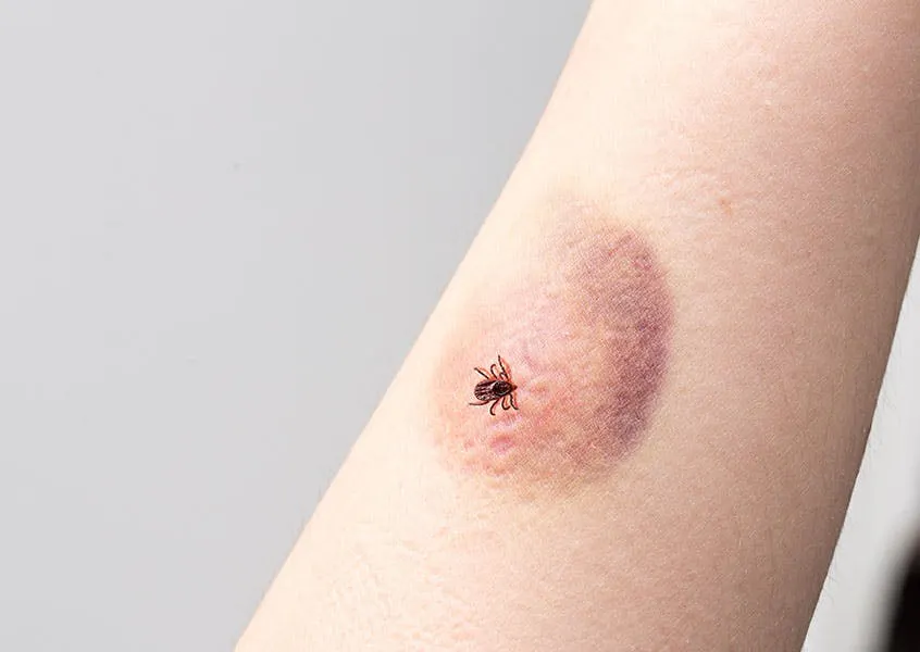 10-12 days after a person is infected with a blood-sucking disease carrier, they may start to experience symptoms such as high fever, chills, headache, and muscle pain, body ache, eye pain, red eyes, nausea, vomiting, dry cough, and swollen lymph nodes. The bite wound will gradually bulge or enlarge and looks like eschar but there will be no pain or itching. In some patients, it may disappear on its own. However, in case of complications, it will cause danger to the point of death due to pneumonia meningitis and encephalitis or organ failure and bleeding.