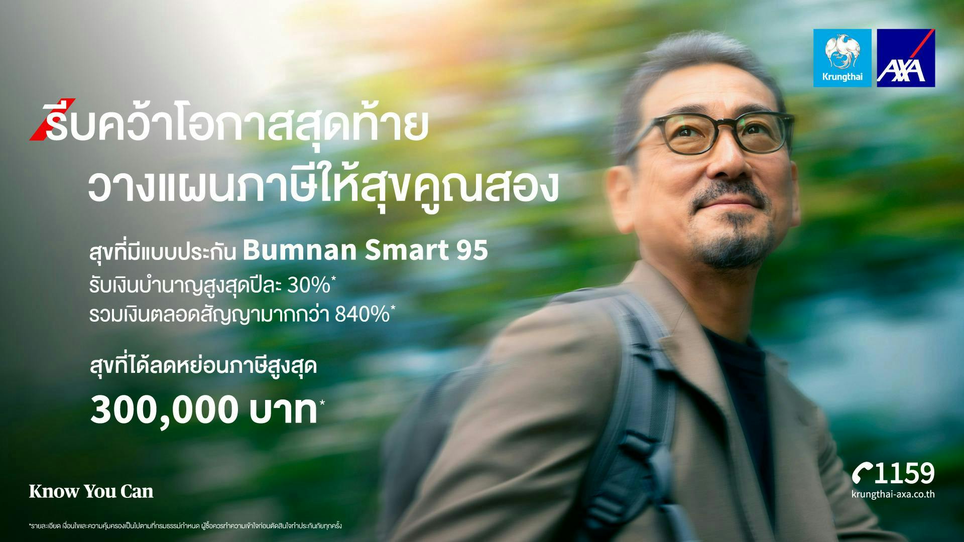 สุขที่มีแบบประกัน Bumnan Smart 95 สุขที่ได้ลดหย่อนภาษีสุงสุด 300,000 บาทเกษียณอย่างมั่นใจ รับเงินบำนาญยาวนานถึงอายุ 95 ปี รวมสูงสุดถึง 840% ของจำนวนเงินเอาประกันภัย (ขึ้นอยู่กับแผนประกันที่เลือก) เบี้ยประกันสามารถลดหย่อนภาษีได้ สูงสุด 300,000 บาท คลิกดูรายละเอียด