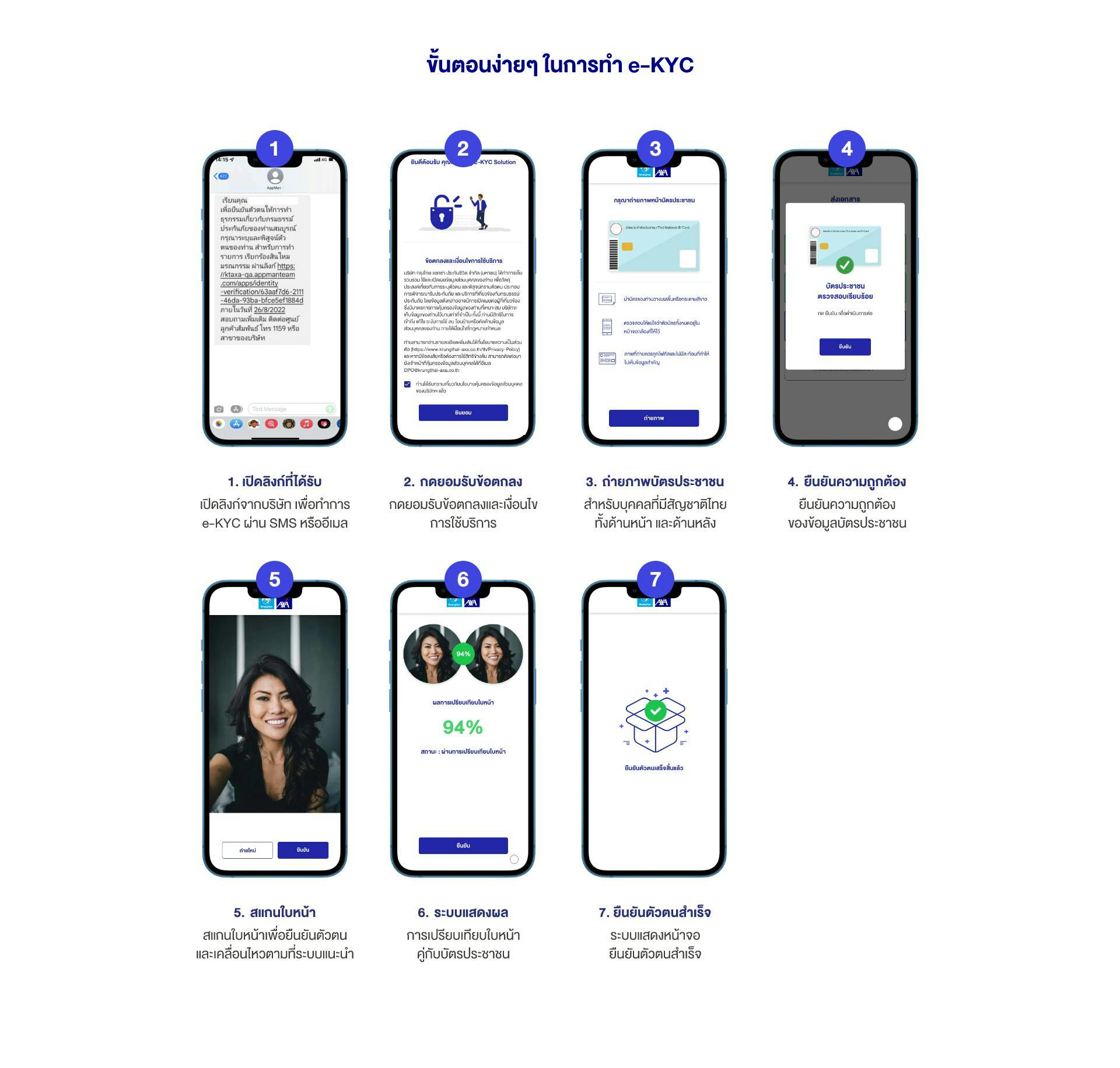 เพื่อให้เป็นไปตาม พ.ร.บ. ป้องกันและปราบปรามการฟอกเงิน ทางบริษัทกรุงไทย-แอกซ่า ประกันชีวิต ได้พัฒนาระบบ การระบุตัวตนและพิสูจน์ทราบตัวตนทางอิเล็กทรอนิกส์ e-KYC เพื่อยกระดับความปลอดภัยของข้อมูลของลูกค้าได้อย่างถูกต้อง รวดเร็ว มีมาตรฐาน และปลอดภัย ป้องกันการโจรกรรม หรือแอบอ้างตัวตน สร้างความปลอดภัยต่อเจ้าของข้อมูล รวมไปถึงการให้บริการเกี่ยวกับกรมธรรม์ประกันชีวิตและสิทธิประโยชน์อื่นๆ ตามกรมธรรม์ประกันชีวิตได้อย่างครบถ้วนและถูกต้อง