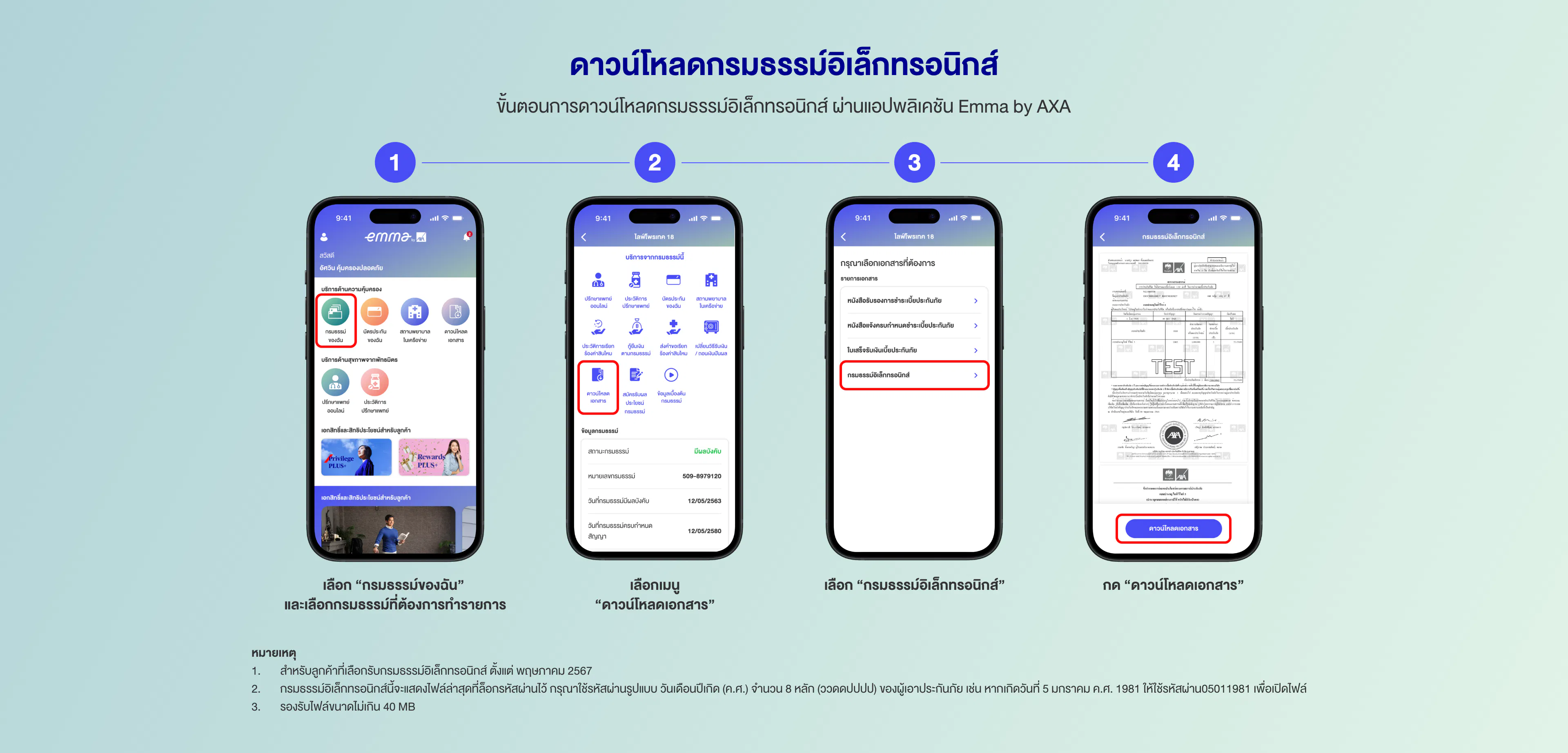 1. สำหรับลูกค้าที่เลือกรับกรมธรรม์อิเล็กทรอนิกส์ ตั้งแต่ พฤษภาคม 2567