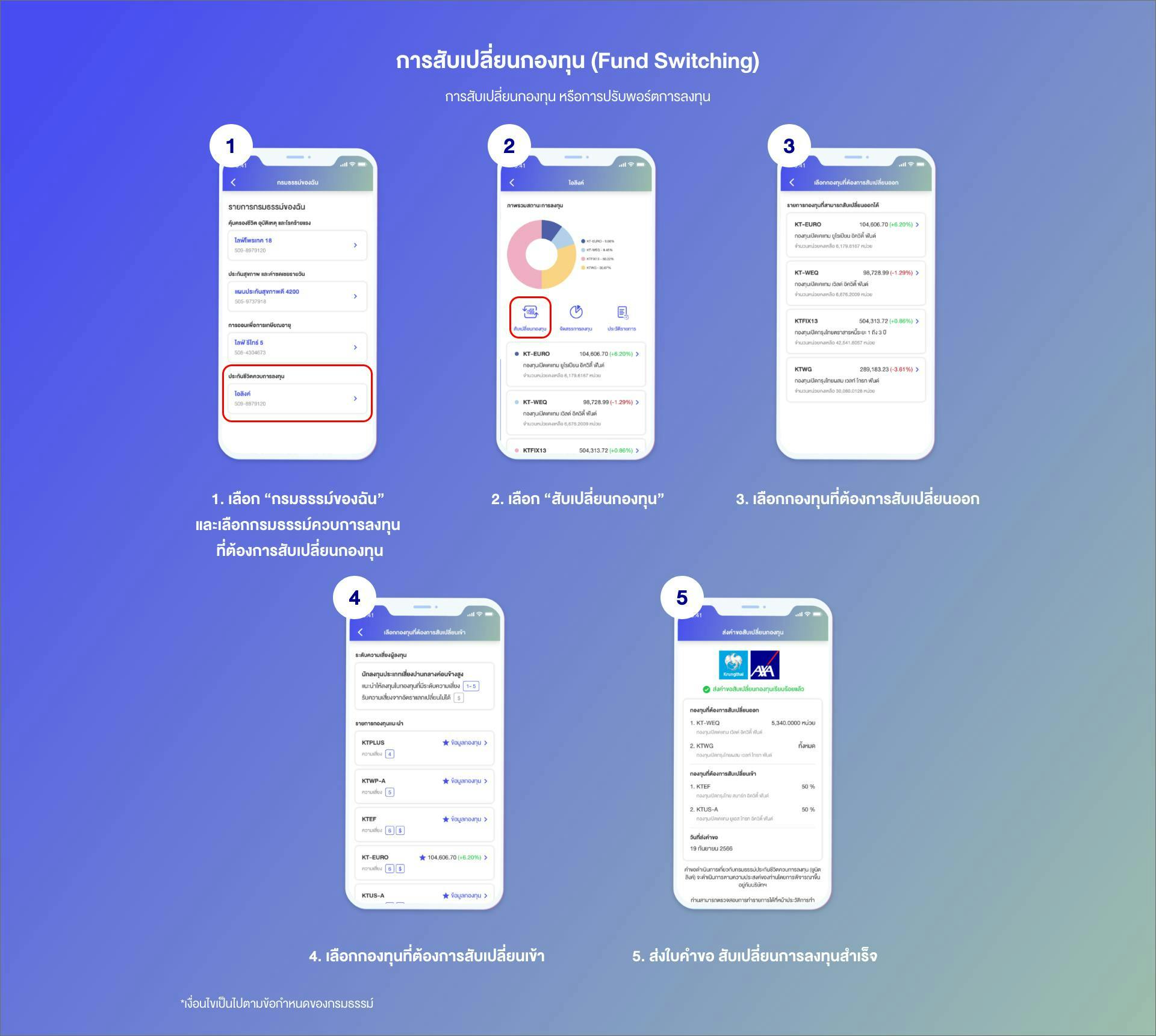 4. การดำเนินการต่างๆ ของกองทุนรวม ผู้เอาประกันภัยควรศึกษารายละเอียดจากหนังสือชี้ชวนของแต่ละกองทุน