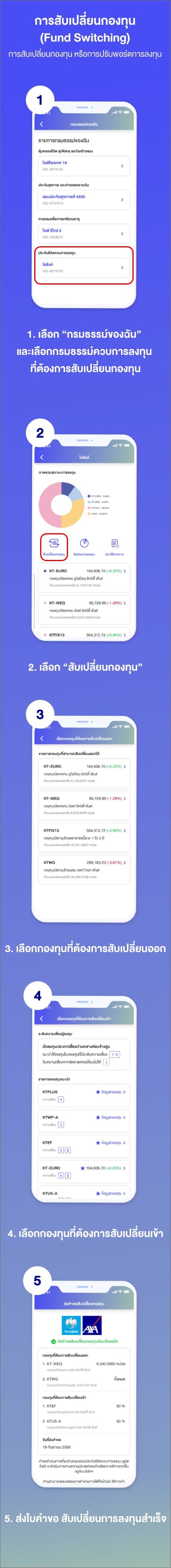 ขั้นตอนการทำรายการสับเปลี่ยนกองทุน ผ่านทางแอปพลิเคชัน Emma by AXA