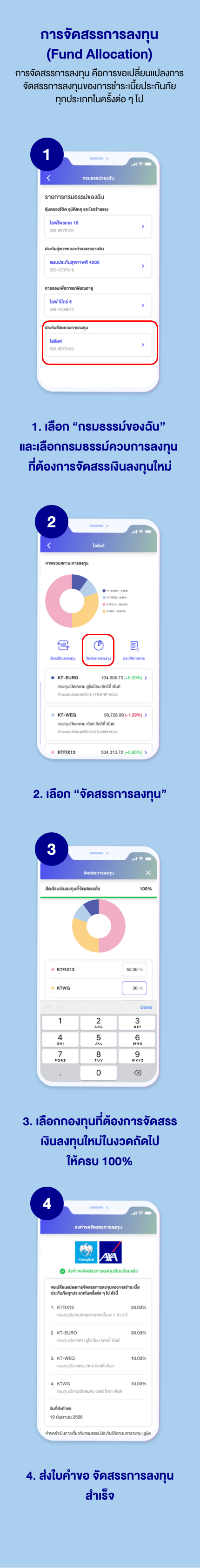 ขั้นตอนการทำรายการจัดสรรการลงทุน ผ่านทางแอปพลิเคชัน Emma by AXA