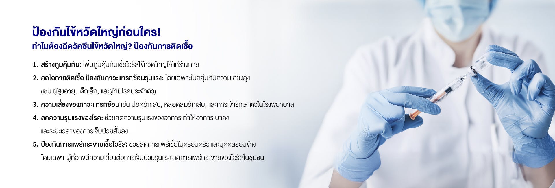 - บริษัท ฯ รับผิดชอบค่าใช้จ่ายเฉพาะค่าวัคซีนเท่านั้น ไม่รวมค่าใช้จ่ายที่เกิดขึ้นจากการปรึกษาแพทย์ การตรวจรักษา และค่าบริการอื่น ๆ
