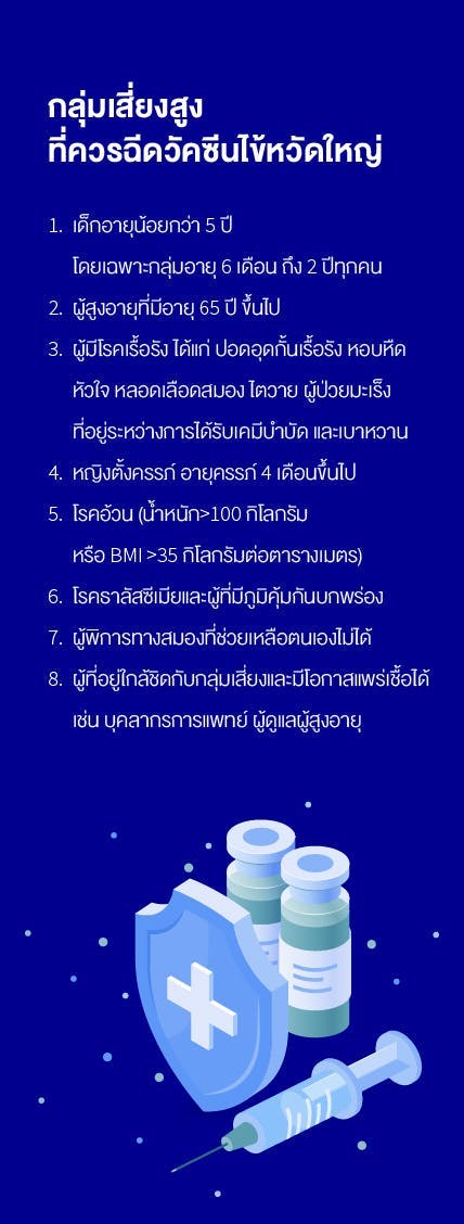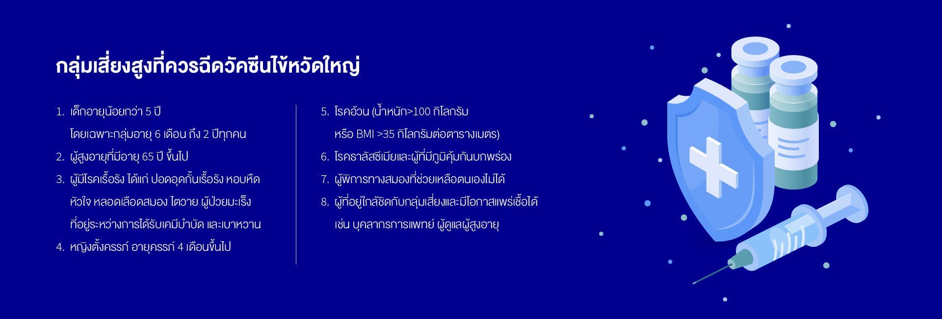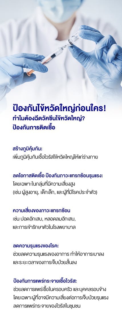 เมื่อเข้าสู่ฤดูฝน “โรคไข้หวัดใหญ่” เป็นหนึ่งในโรคที่หลายคนอาจต้องเผชิญอย่างหลีกเลี่ยงไม่ได้ โดยกรุงไทย-แอกซ่า ประกันชีวิต เล็งเห็นความสำคัญในการดูแลสุขภาพเชิงป้องกัน ซึ่งครอบคลุมถึงผู้ถือกรมธรรม์ประกันสุขภาพทุกคน การฉีดวัคซีนป้องกันโรคไข้หวัดใหญ่จึงเป็นวิธีที่มีประสิทธิภาพที่สุดในการป้องกันโรคนี้ ควรฉีดวัคซีนก่อนฤดูฝนประมาณ 2 สัปดาห์ถึง 1 เดือน ไม่เพียงแต่ช่วยลดโอกาสติดเชื้อ แต่ยังช่วยลดความรุนแรงของอาการและความเสี่ยงจากภาวะแทรกซ้อนที่อาจเกิดขึ้นได้