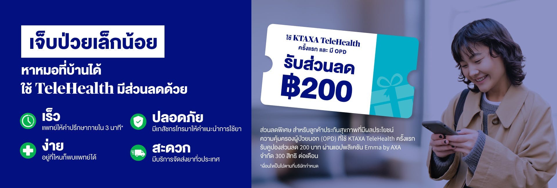 *ทั้งนี้ บริษัทฯ ขอสงวนสิทธิในการเปลี่ยนแปลงเงื่อนไขการใช้บริการ TeleHealth โดยมิต้องแจ้งให้ทราบล่วงหน้า