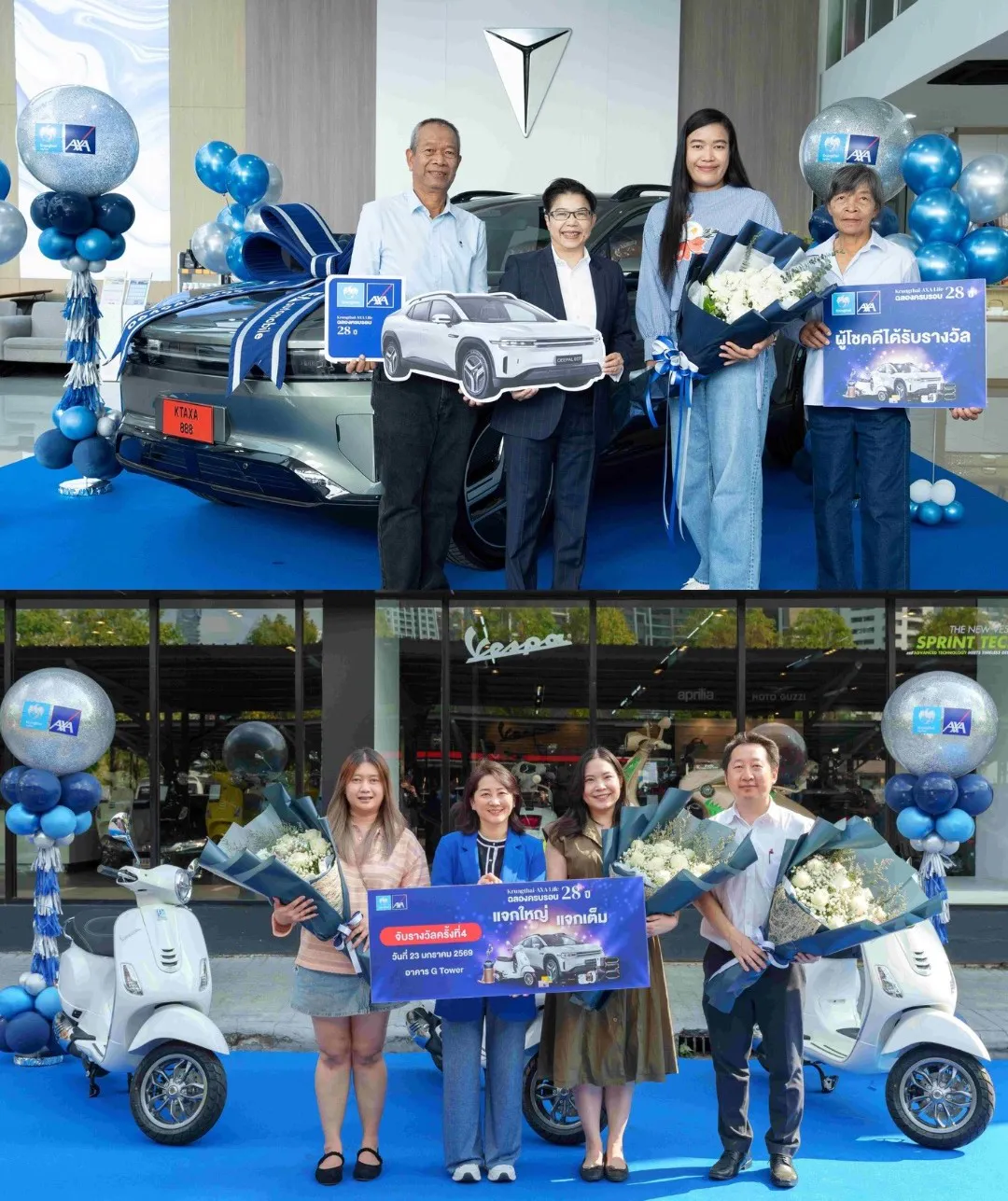 บมจ.กรุงไทย-แอกซ่า ประกันชีวิต นำโดยคุณบุปแผาวดี โอวรารินท์ ประธานเจ้าหน้าที่บริหาร ฝ่ายการตลาด (ภาพบน คนที่ 2 จากซ้าย) มอบรางวัลใหญ่ รถยนต์ DEEPAL E07 Performance AWD พร้อมอุปกรณ์ชาร์จไฟ มูลค่า 1,999,000 บาท ให้แก่ คุณภัทราวดี ขวัญยืน (ภาพบน คนที่ 3 จากซ้าย) ลูกค้าผู้โชคดีจากแคมเปญ “ฉลองครบรอบ 28 ปี กรุงไทย-แอกซ่า แจกใหญ่ แจกเต็ม” ณ ศูนย์บริการ ดีพอล อิเลคตร้า ออโตโมบิล ประดิษฐ์มนูธรรม