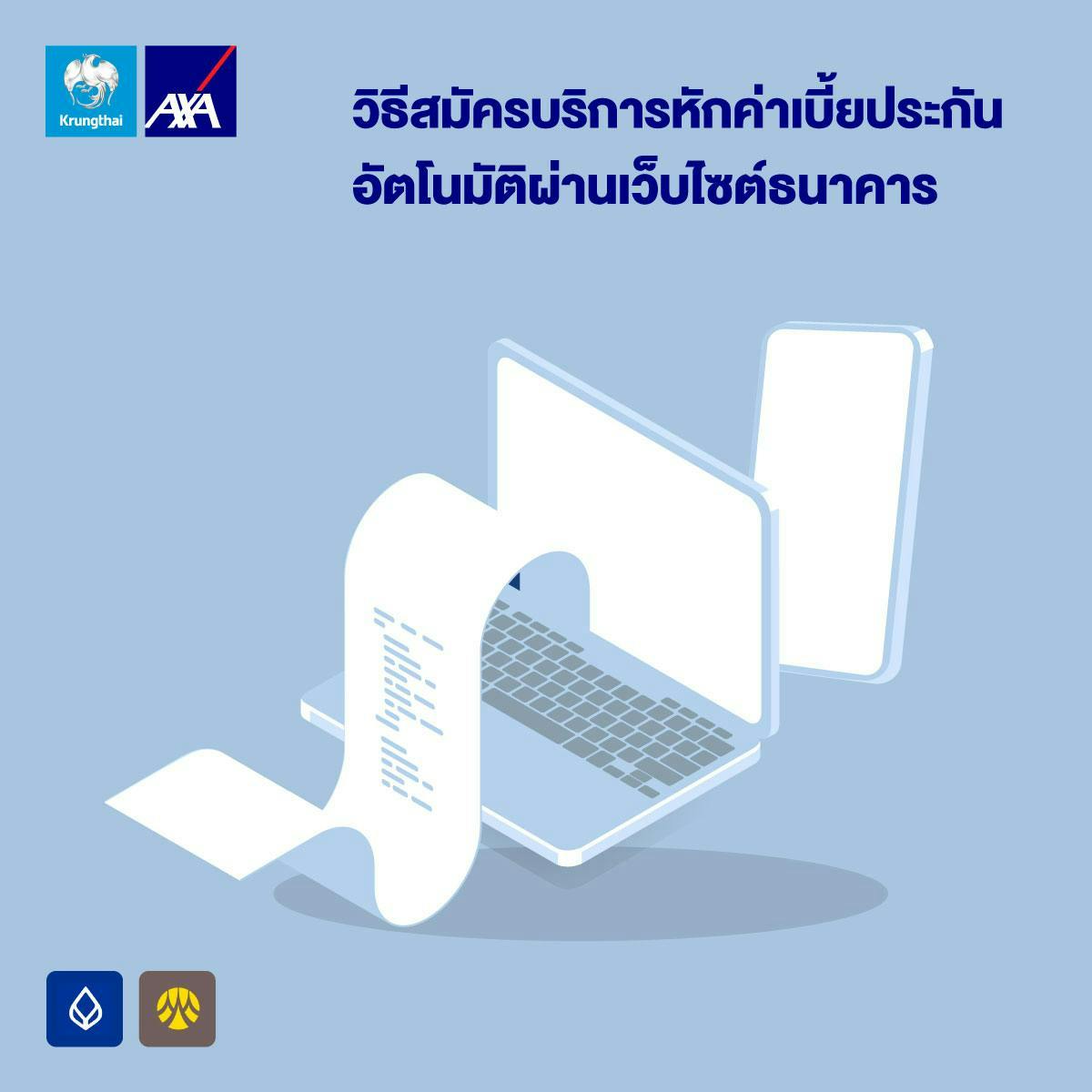 สำหรับลูกค้ากรุงไทย-แอกซ่า ที่ต้องการสมัครบริการหักค่าเบี้ยประกันอัตโนมัติผ่านเว็บไซต์ธนาคาร สามารถปฎิบัติตามขั้นตอน ดังนี้