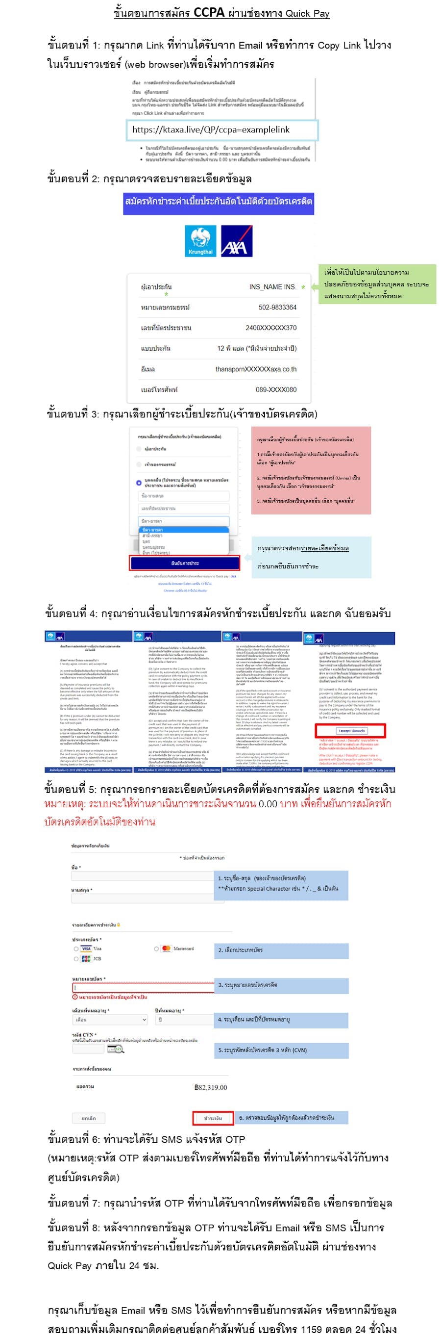 ขั้นตอนการสมัครหักชำระเบี้ยประกันอัตโนมัติด้วยบัตรเครดิต (CCPA) ผ่านช่องทาง Quick Pay