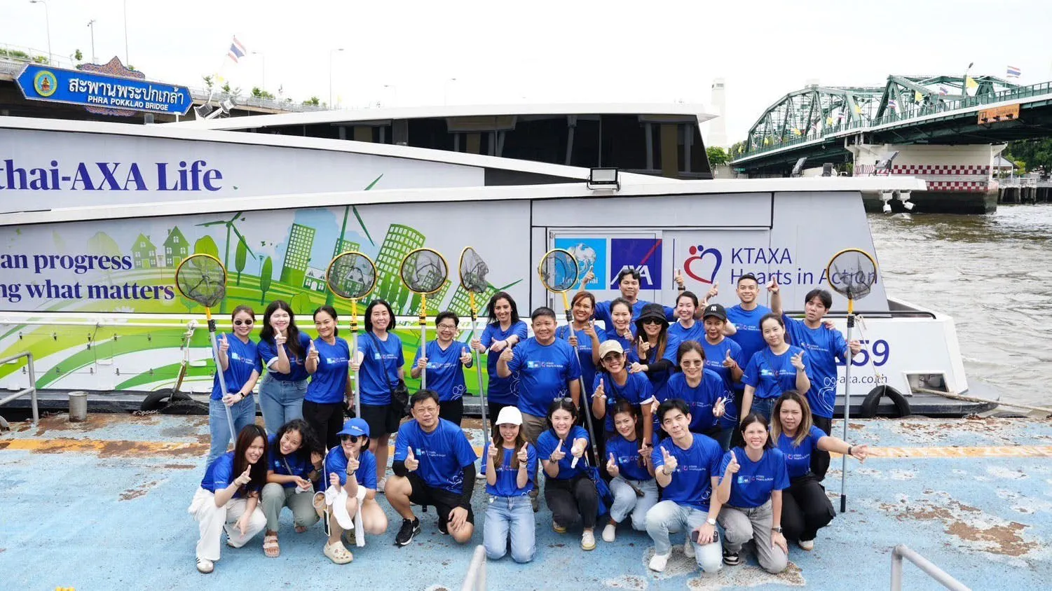 บมจ. กรุงไทย-แอกซ่า ประกันชีวิต ในฐานะผู้นำบริษัทประกันที่ใส่ใจสิ่งแวดล้อม หรือ ‘Green Insurer’ นำโดย คุณ ลาทีฟา ซาอีด ประธานเจ้าหน้าที่บริหาร ฝ่ายทรัพยากรบุคคลและการสื่อสารองค์กร แอกซ่า อินเตอร์เนชั่นแนล มาร์เก็ต (แถวหลัง คนที่ 6 จากซ้าย) พร้อมด้วยคุณบุปผาวดี โอวรารินท์ ประธานเจ้าหน้าที่บริหาร ฝ่ายทรัพยากรบุคคลและภาพลักษณ์องค์กรและการสื่อสารองค์กร (แถวหลัง คนที่ 5 จากซ้าย) สานต่อนโยบายด้าน Climate Change & Biodiversity หรือการเปลี่ยนแปลงสภาพภูมิอากาศ และความหลากหลายด้านชีวภาพ จัดโครงการ “Save Our River” โดยสนับสนุนเรือไฟฟ้า (EV boat) และติดตั้งถังขยะรีไซเคิล เพื่อช่วยการจัดการขยะจากต้นทางก่อนไหลลงสู่แม่น้ำ และทะเล ซึ่งบริษัทฯ ได้ตั้งเป้าหมายในการช่วยลดขยะในแม่น้ำเจ้าพระยา จำนวน 43 ตันต่อปีจากการจัดการขยะบนเรือ นอกจากนั้น เรือไฟฟ้าดังกล่าวใช้พลังงานสะอาดในการขับเครื่องยนต์ ซึ่งจะสามารถช่วยลดการปล่อยก๊าซคาร์บอนไดออกไซด์ ได้มากถึง 1,200 ตัน ต่อปี พร้อมกันนี้ พนักงานจิตอาสาของบริษัทฯ ได้รวมพลัง Hearts in Action ช่วยเก็บขยะในแม่น้ำเจ้าพระยา และพื้นที่ใกล้เคียง เพื่อช่วยสร้างจิตสำนึกด้านสิ่งแวดล้อม และป้องกันมลพิษทางน้ำก่อนไหลลงสู่ทะเล และกลายเป็นขยะทะเลที่เป็นปัญหาใหญ่ด้านสิ่งแวดล้อมในปัจจุบันซึ่งกิจกรรมดังกล่าวเป็นอีกหนึ่งแรงขับเคลื่อนด้านสิ่งแวดล้อม สู่ความยั่งยืนของสังคมไทย พร้อมทั้งสอดคล้องกับเป้าหมายสูงสุดของบริษัทฯ ที่จะอยู่เคียงข้างทุกความเชื่อมั่น ดูแลกันตลอดไป